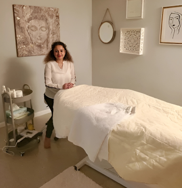 Fueled by her passion for energy work and a deep desire to help others, Gunjan expanded her expertise to massage therapy. She studied under her guru in Mumbai, learning aromatherapy, facials, and massage techniques before refining her skills further and getting licensed in the U.S.